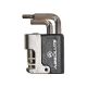 Esta ferramenta inclui três chaves Allen de diferentes tamanhos: 4mm, 5mm e 6mm. Adicionalmente, possui uma chave Philips, essencial para a manutenção de componentes que utilizam parafusos deste tipo, comumente encontrados em suportes de garrafas, luzes e outros acessórios montados na bicicleta. Por fim, o canivete incorpora um extrator de corrente, capaz de lidar com correntes de até 11 velocidades.